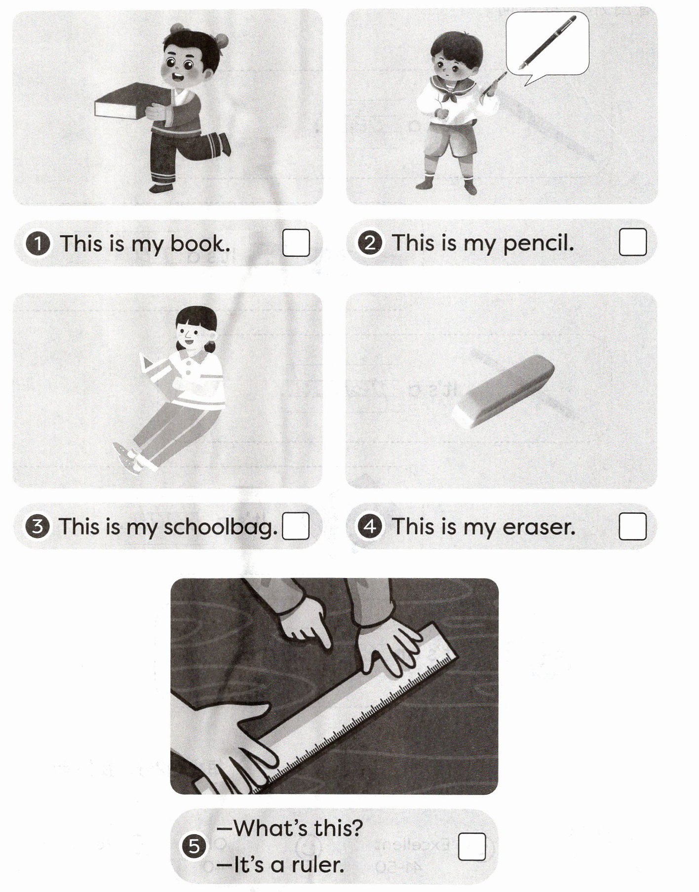 2 看图片,判断句子正误。在正确的句子后打√,在错误的句子后打×。