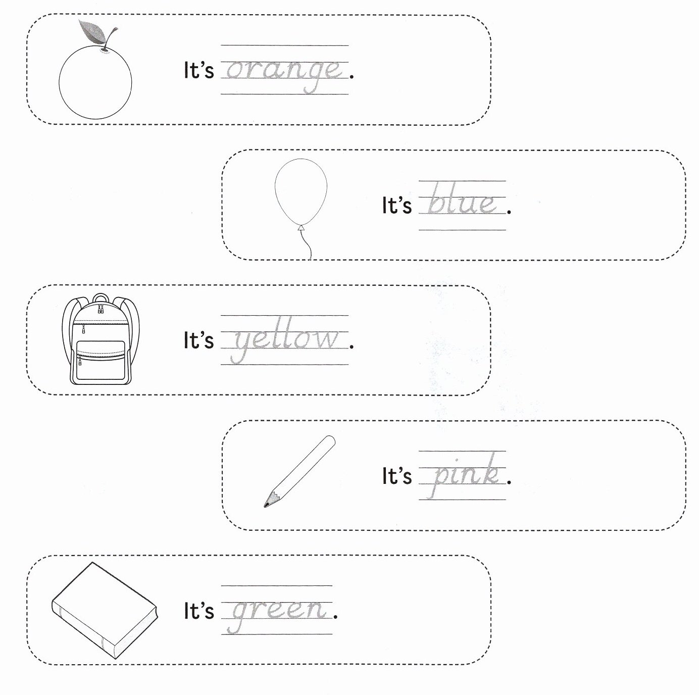 根据图片内容,答案依次为:orange;blue;yellow;pink;green。