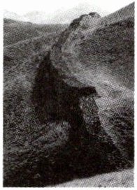 秦长城(如右图)是军事性防御工程,凝聚着我们祖先的血汗和智慧。如今长城是中华民族聪明智慧和充满向心力、凝聚力的精神象征,是中华民族古老文化的丰碑,象征着中华民族的血脉相承和民族精神。