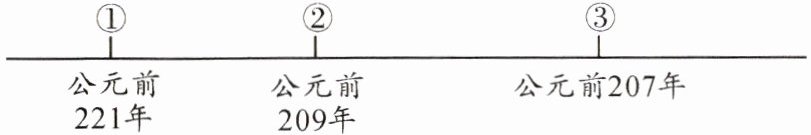 (2)①秦朝建立;②大泽乡起义(陈胜、吴广起义);③秦朝灭亡。