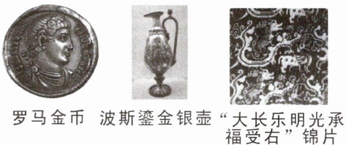 (2) 材料二是丝绸之路上出土的文物图片,你能从这些图片中得出丝绸之路的哪些信息?