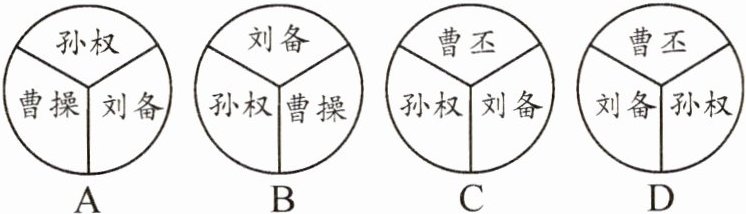 D 【解析】220 年,曹丕建立魏,定都洛阳,在北方;221 年,刘备建立蜀,定都成都,在西南地区;222 年,孙权称吴王,在东南地区。通过地理位置可判断选 D。