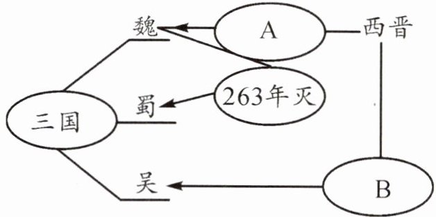(1) 请你在图示中 A 和 B 处填写上正确的时间。西晋结束三国鼎立局面,统一全国的标志是什么?