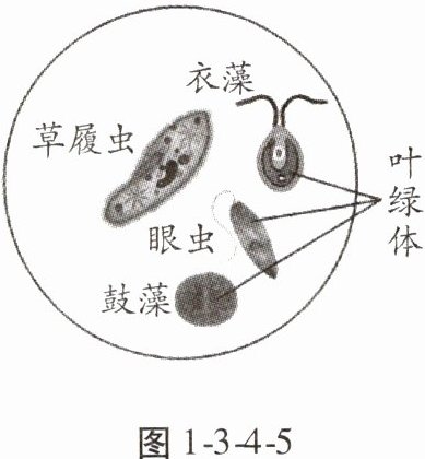 2. 【真实情境】小林采集了一些池塘水,取一滴制成临时装片后放在显微镜下观察,发现视野里有许多微小生物。显微镜视野里的微小生物(如图1-3-4-5)中,只能利用现成有机物生活的是( )