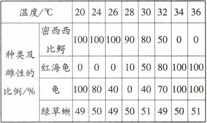 (1)以上几种爬行动物性别发育基本不受温度影响的种类是______。