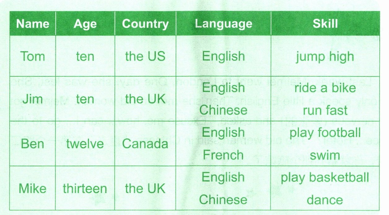 .2) The boy comes from the UK. He can speak English and Chinese. He can play basketball well. He can dance well. How old is the boy? He's