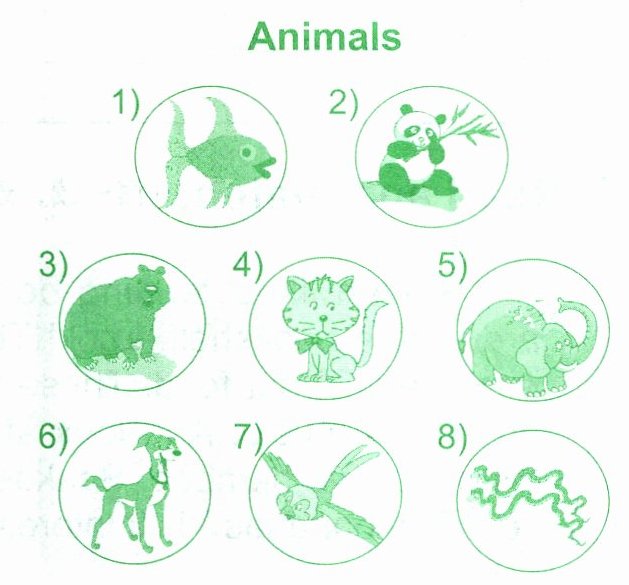 fish, panda, bear, cat, elephant, dog, bird, snake