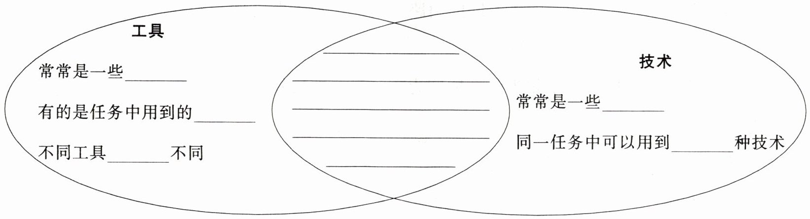 工具常常是一些物品,有的是任务中用到的物体。不同工具优劣不同,不同的工具有不同的使用技术,可以根据技术来发明工具,技术和工具都是可以改进的。