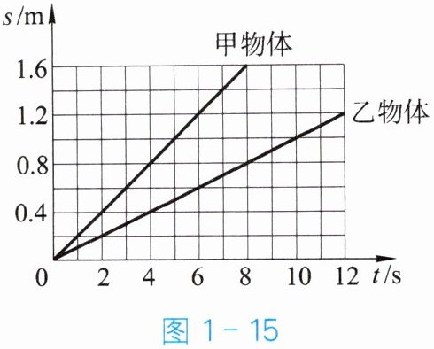 12. 甲、乙两物体同时同地同向做匀速直线运动,它们运动的路程$s随时间t变化的图像如图1 - 15$所示。经过$6s$,两物体的位置关系是(