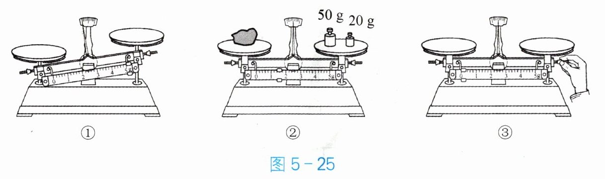 25. 某同学用天平测量小石块的质量,图 5 - 25 为用天平测量小石块质量过程中的几个步骤,合理的顺序是