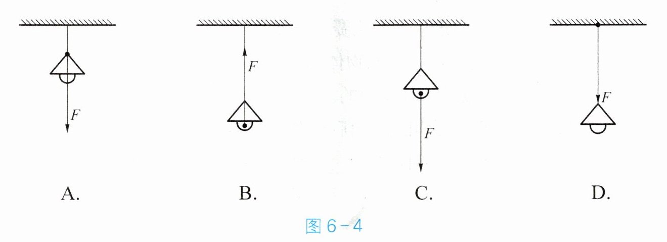 3. 如图6 - 4所示,吊灯悬挂在天花板上。下列天花板所受拉力的示意图中正确的是(