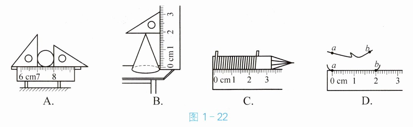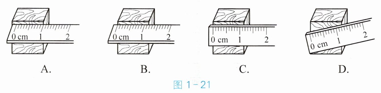 3. 图1-21是用厚刻度尺测量木块长度的情形,其中正确的是(