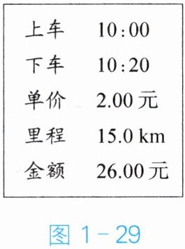 举一反三 某人在某地乘坐出租车在平直公路上行驶,图 1 - 29 为他乘车到达目的地的车费发票的部分内容。求: