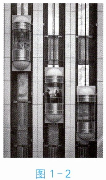 3. 如图1-2所示,某景区的观光电梯带着游客上升。电梯上升过程中,下列说法中正确的是(