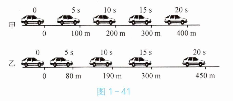 8. 图 1 - 41 记录了甲、乙两车在平直公路上行驶时,在某段时间内的运动过程。关于甲、乙两车在该段时间内的运动情况,下列说法中正确的是(