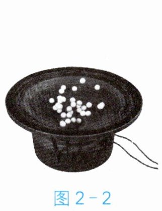 2. 如图 2 - 2 所示,在扬声器的纸盆内放一些泡沫小球,随着接通电源后音乐声响起,泡沫小球上下跳动,这说明发声的扬声器在