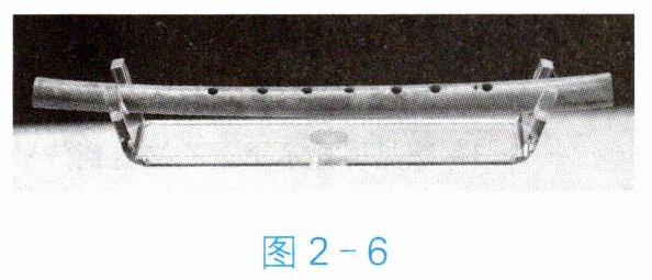 8. 贾湖骨笛(图 2 - 6)是迄今为止在中国发现的最早、保存最为完整的吹管乐器。吹奏骨笛发出的声音是由