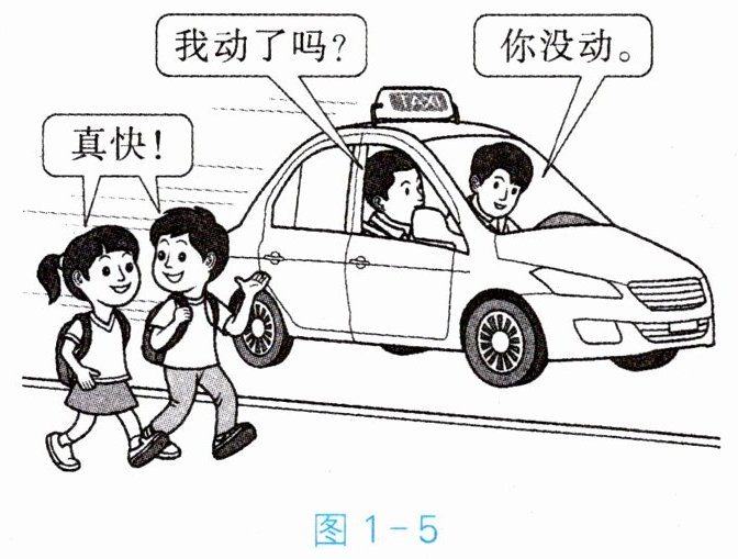 7. 坐在汽车里的乘客、司机和路旁的孩子们有如图1-5所示的对话,下列分析中正确的是(