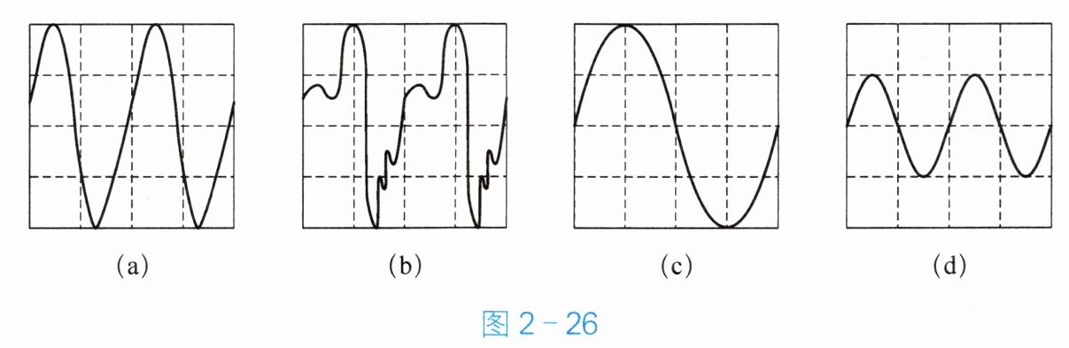11. 图 2 - 26 是同一示波器相同参数下的不同声音波形图,其中一幅波形图与其他图片表示的音调不同,还有一幅波形图与其他图片表示的响度不同,这两幅波形图分别是(