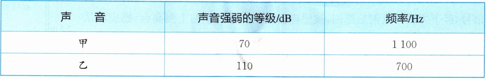 13. 用监测仪测得同一声源发出的甲、乙两种声音的特性见表 2 - 5。比较表中数据,可知(