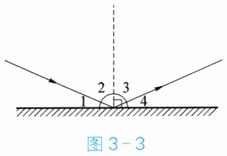 2. 如图3-3所示,当光照射到平面镜时,发生了反射。在此现象中,光的反射角是(