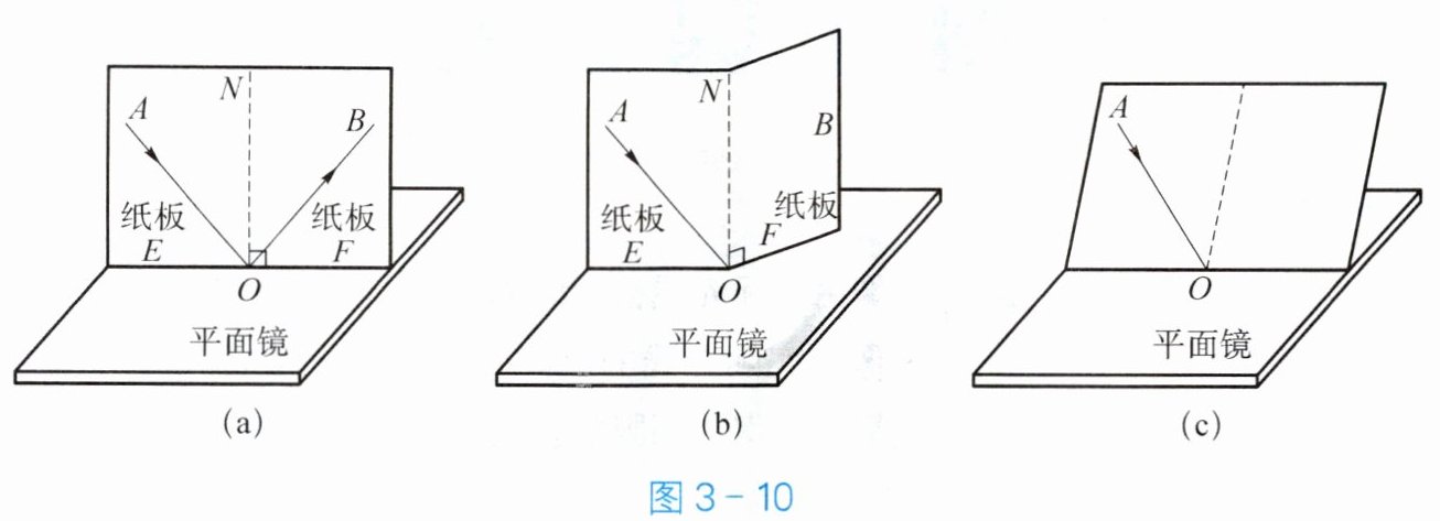 。(3) 接着小明将纸板$F$往后折,如图3-10(b)所示,这一操作是为了探究