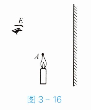 如图 3 - 16 所示,平面镜前有一个发光点 $ A $,请根据平面镜成像的特点画出眼睛 $ E $ 看到发光点 $ A $ 的光路图。