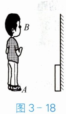 举一反三:如图 3 - 18 所示,请根据平面镜成像的特点,画出人眼 $ B $ 在镜中看到脚尖 $ A $ 的光路图。
