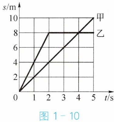 举一反三 甲、乙两物体同时从同一地点沿直线向相同方向运动,它们运动的路程$s随时间t变化的图像如图1 - 10$所示。下列说法中正确的是(