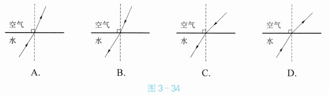 2. 岸边的人可以看到水面下的景物,图 3 - 34 中能合理解释该现象的是(
