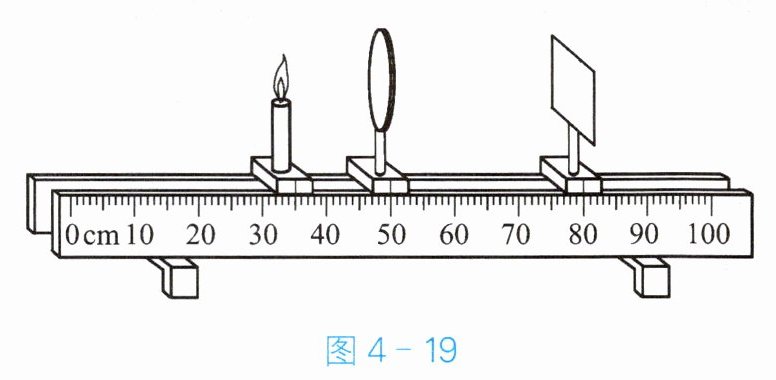 7. 图4-19中,烛焰可在光屏上成清晰放大的像。下列操作中可能使烛焰在光屏上成清晰缩小的像的是(