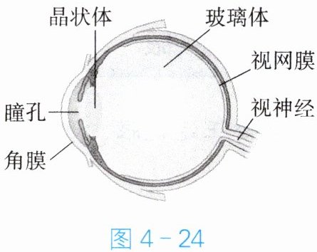 1. 人的眼睛的主要结构如图 4 - 24 所示,眼睛视物原理与