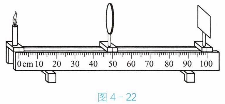 例题 实验桌上有两个凸透镜$A$、$B$,其中凸透镜$A的焦距为10cm$,凸透镜$B的焦距为50cm$。光具座上标尺的刻度范围如图 4 - 22 所示。小李想探究凸透镜成实像的规律,应选用凸透镜
