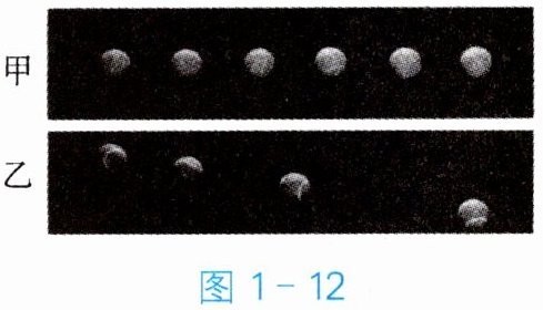 8. 频闪摄影是研究物体运动常用的实验方法,这种方法是用照相机每隔相同时间对运动物体进行拍照,记录物体运动的不同位置。图$1 - 12$是甲、乙两物体的频闪照片,由图可知,甲物体做