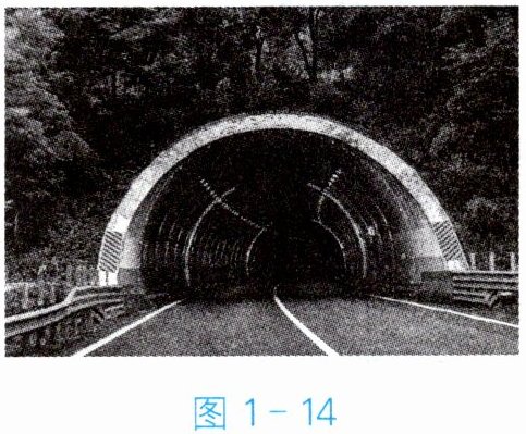11. 某品牌汽车测试时,先让汽车在山路$A上以15m/s的速度行驶100s$,随后进入公路$B$;再让汽车在公路$B上以30m/s的速度行驶6km$后,进入如图$1 - 14所示的隧道C$(隧道全长$3.0km$,限速$60km/h$)。求:
