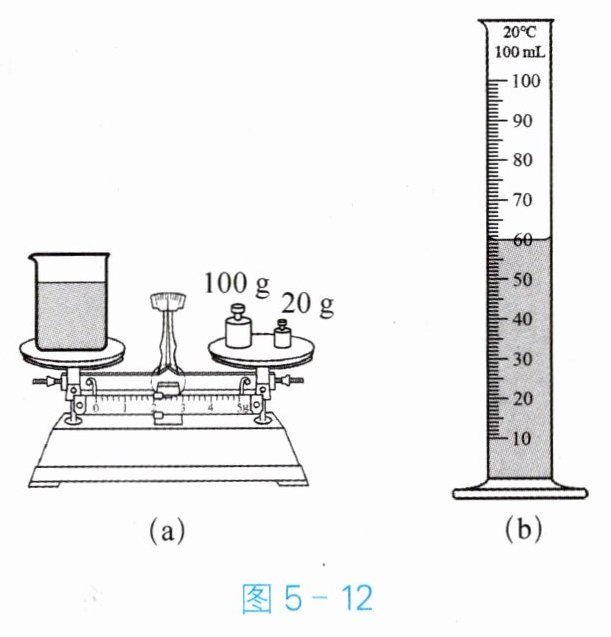 g。2. 将烧杯中的部分液体倒入量筒,如图 5 - 12(b)所示,由图可知量筒中液体的体积为