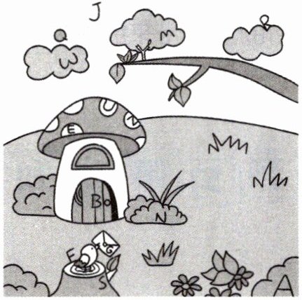 二、你认识哪些英文字母呢?你能找出下图中的英文字母吗?