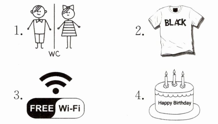一、圈出下面图片中的英文字母,并和同桌一起读一读。