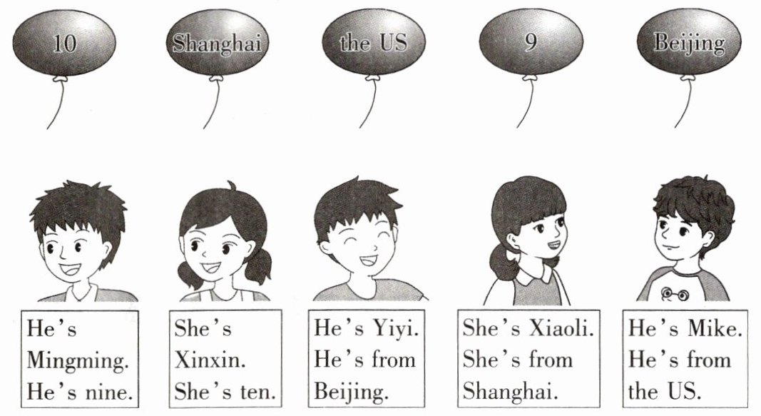 一、Read and match. 连线。请读一读每位同学的介绍,找出属于每个人的气球吧!