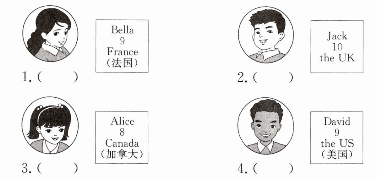 三、Read and choose. 2024 年夏天,“China travel”成为全网火爆的话题。很多外国人来到中国旅游,为中国的城市、美食、科技所震惊。小玉在暑假旅行期间,结识了几位前来中国旅游的新朋友,他们来自世界各地。假如你是小玉,你会如何向他人介绍这些新朋友呢?给图片选择合适的句子。