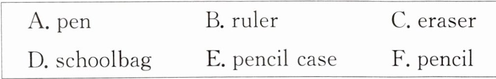 一、Look, read and choose. 恬恬正在整理被落下的学习用品,请根据图片提示,选出正确的单词或短语补全部分学习用品的信息。