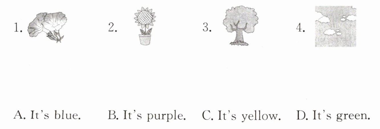 二、Look,read and match. 公园里有很多美景,还有很多好玩的场所。走进公园,我们可以看到许多颜色,请将事物与对应的颜色连线。