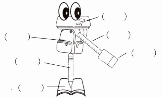 五、Read and finish. Fangfang 用学习用品制作了一个木偶,它还会说歌谣呢,快来看一看,填一填吧!