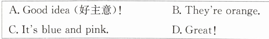 三、Read, choose and colour. 请选择恰当的句子,补全对话,并根据对话内容给图片涂色。