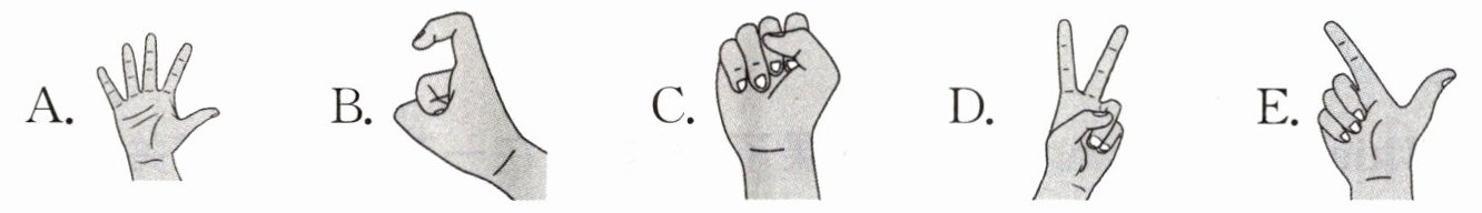 )1. 老师问你阿拉伯数字 4 后面是哪个数字,你会说:____A. Five.