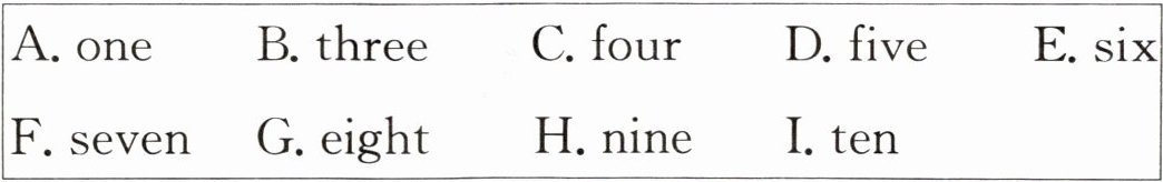 五、Read and choose. 选出下面成语里暗含的英文数字,并将选项填写在横线上。请和小伙伴们一起来比赛吧!看谁找得又快又准确。(单词可重复使用)