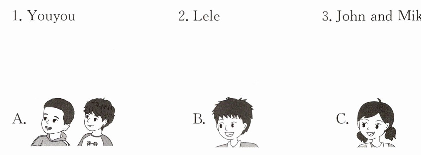 Hello,everyone! I'm Youyou. I'm nine. They are my friends. He's Lele. He's nine,too. He's from China. They are John and Mike. They're from the UK,too. We are good friends.