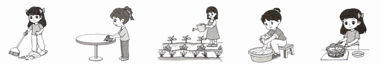 1. make the beds 2. cook 3. clean the room 4. wash the dishes 5. take out the rubbish