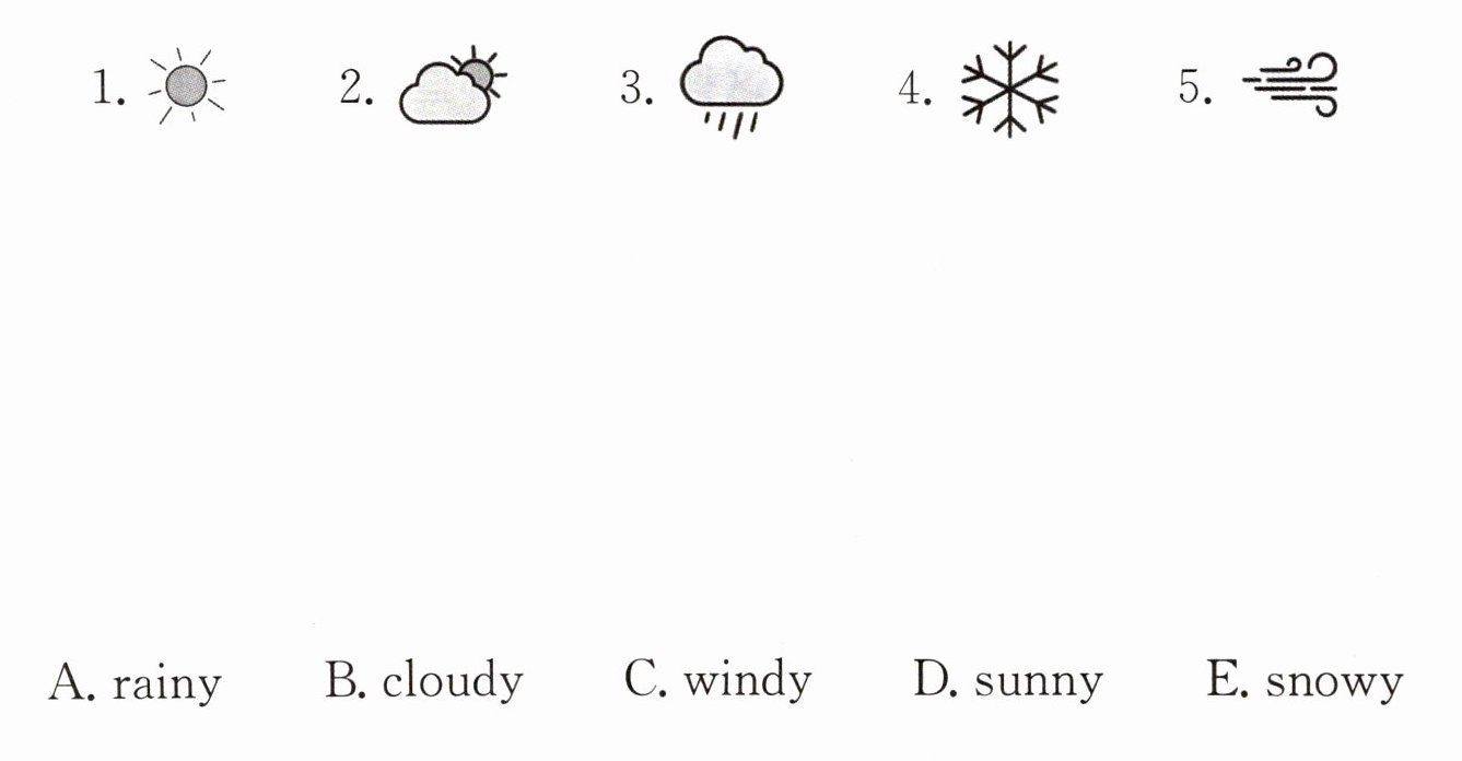 一、Look,read and match. 你认识天气预报使用的图标吗?将图标与正确的单词连线。