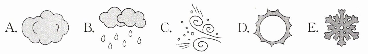 二、Read and choose. 班级正在进行天气知识竞赛,为下列词语匹配相应的天气。